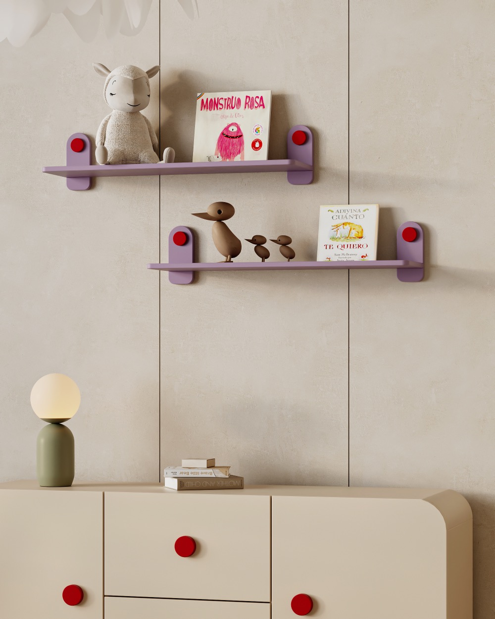 Idealna za knjige, medalje, diplome i omiljene uspomene, ova kompaktna polica čuva stvari koje deci najviše znače. Njene čiste linije i nežan izgled lako se uklapaju u svaki dečiji prostor, dodajući mu toplinu i urednost.