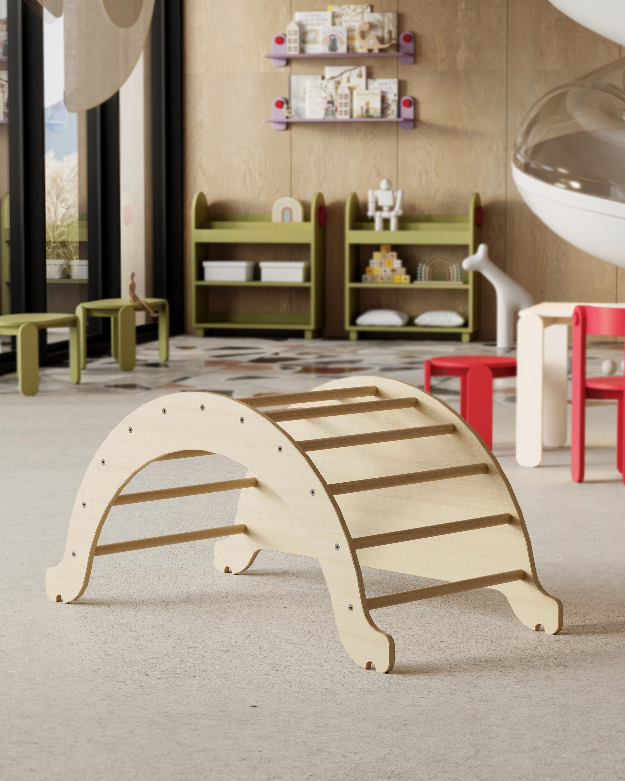 Može se koristiti samostalno kao penjalica ili most, ali i kao deo kompletnog Mini Moves seta za još više mogućnosti kretanja i istraživanja. Stabilan, siguran i zaobljen u svakom detalju, luk je idealan za svakodnevne male avanture.